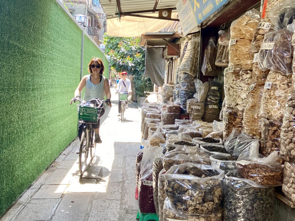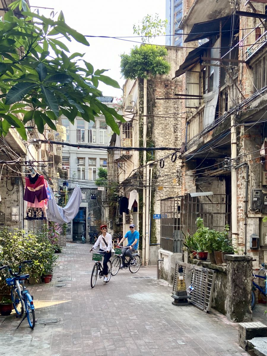 Learn more about Guangzhou's Lingnan culture with a visit to the Cantonese Opera Museum and the restored old neighborhood around it, including Bruce Lee's ancestral hall. Feel the city's trading spirit when riding through Liwan's Xiguan wholesale markets and Qingping dried goods market. Explore Shamian Island and learn the complicated history of the island and some of its buildings, before we check out the 'Canton Bund'. After boarding the Pearl River Ferry, we arrive on the 'forgotten' side of the river and visit the stunning Haizhuang Buddhist Temple. We then crisscross through alleyways in the Nanhuaxi village where time has stood still for hundreds of years, stumbling upon former opium dens, outdoor markets, ancient villas and ancestral halls. After riding through the vast and famous wedding dress market, we end up on the Pearl River, where we finish at the stunning mansion of Generalissimo Sun Yat-sen. The entire route is through alleyways, or along the Pearl River boulevard. An astounding tour through historically important, but less appreciated parts of Guangzhou!